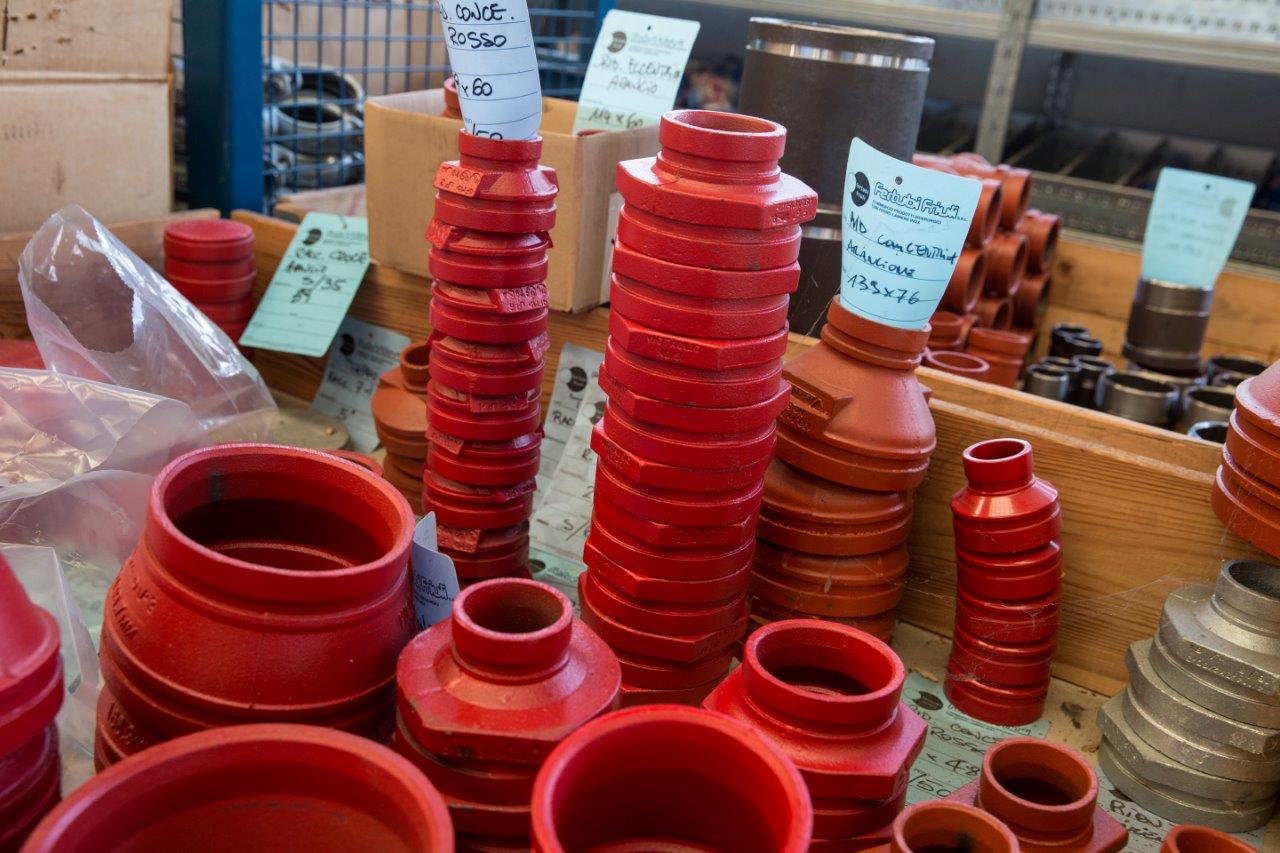 A saldare e filettata, curve, tee, riduzioni concentriche ed eccentriche, fondi.